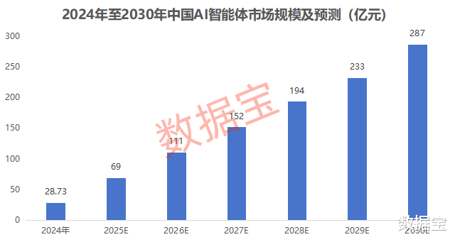 根据中商产业研究院的报告,全球AI智能体市场规模迎来爆发式增长,2025年全球AI智能体市场规模将达113亿美元,2030年将接近500亿美元;2025年中国AI智能体市场规模将达69亿元,到2030年将接近300亿元,2025~2030年复合增速有望超过30%。
