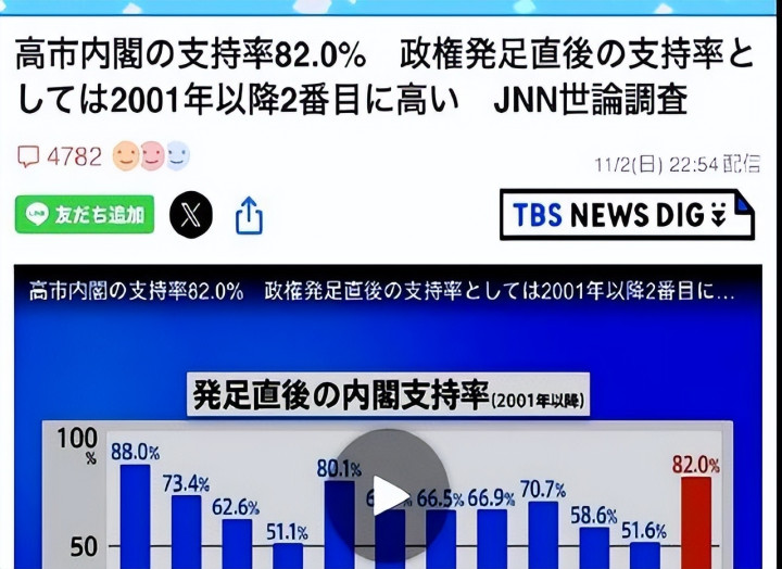 高市支持率的飙升,从根本上来说,是日本社会右倾化的必然结果。